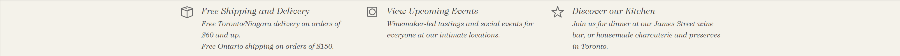 Intimate venues in Niagara and Toronto, with fully customisable menus, attentive service, and the best selection of Ontario wine anywhere.
